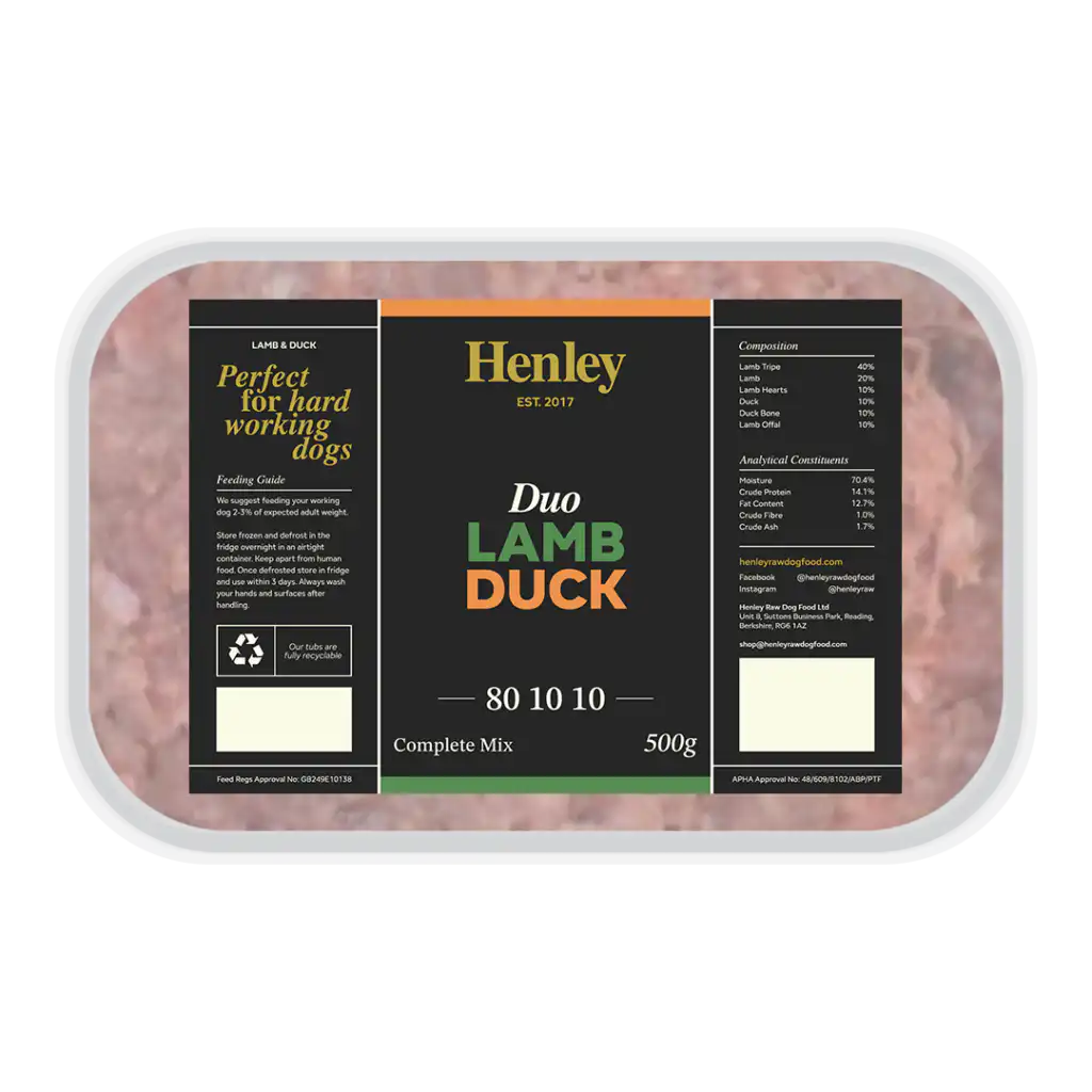 Our Duo range are all dual protein 80-10-10 meals. Perfect for active working dogs. Dual protein meals are great for providing a broader nutritional profile, reducing the risk of food insensitivities and supporting a healthy gut. Different protein sources provide a wider range of amino acids, vitamins and minerals, which help prevent nutrient imbalances and improve your dogs immune system resilience.