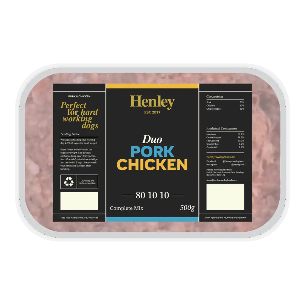 Our Duo range are all dual protein 80-10-10 meals. Perfect for active working dogs. Dual protein meals are great for providing a broader nutritional profile, reducing the risk of food insensitivities and supporting a healthy gut. Different protein sources provide a wider range of amino acids, vitamins and minerals, which help prevent nutrient imbalances and improve your dogs immune system resilience.