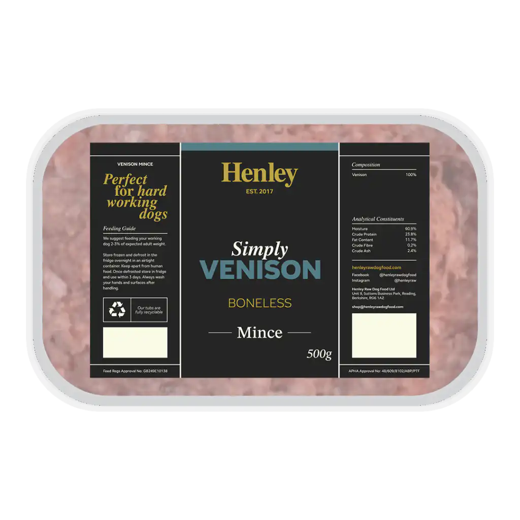 | Venison 100% | Moisture 60.9% Crude Protein 23.8% Fat Content 11.7% Crude Fibre 0.2% Crude Ash 2.4% |