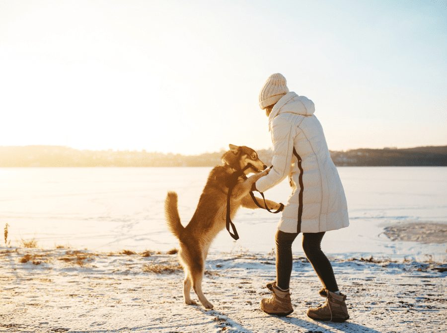 Paths are covered in de-icing chemicals or salts that harm your dog, so be sure to clean their coats and paws when you come back from your walks.